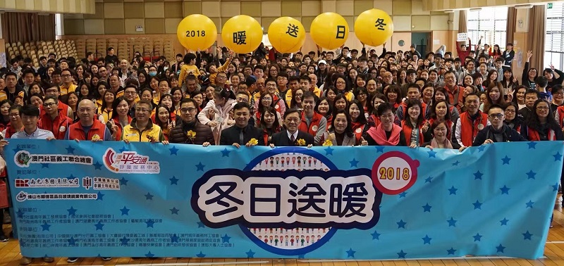 “冬日送暖二○一八”活動開幕式昨日下午二時半假街總大樓六樓舉行,澳門基金會行政委員會委員黎振強、教青局青年結社培訓暨輔導處代處長黃嘉祺、社工局社區協作處長林佩嫦、立法會議員何潤生,街總理事長吳小麗、中國銀行澳門分行義工協會會長陳榮達、南光集團有限公司辦公室副總經理王興華、大豐銀行厚愛義工隊代表兼總經理陳秀芳、澳門社區義工聯合總會理事長鄧文基、冬日送暖二○一八活動籌委主席鄭海輝等出席。