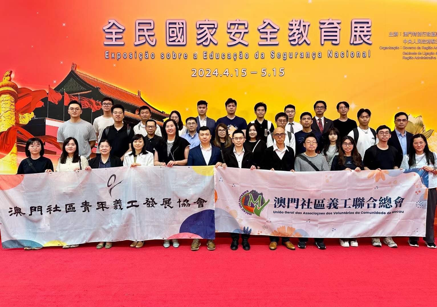 本會聯同澳門社區青年義工發展協會,組織超過三十名義工前往澳門綜藝館參觀“全民國家安全教育展”。包括義工總會理事長鄧文基,監事長何志強,副會長張婉思,副理事長周遠恩、歐秀珊、葉瑜玲、譚震霖、方志超、許騰峰;社青義協會長陳洪華、理事長梁潔環、副理事長馮樂軒等。