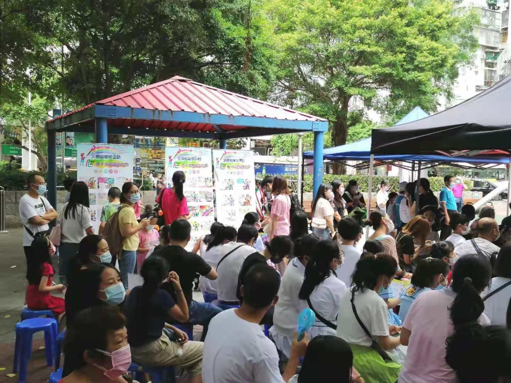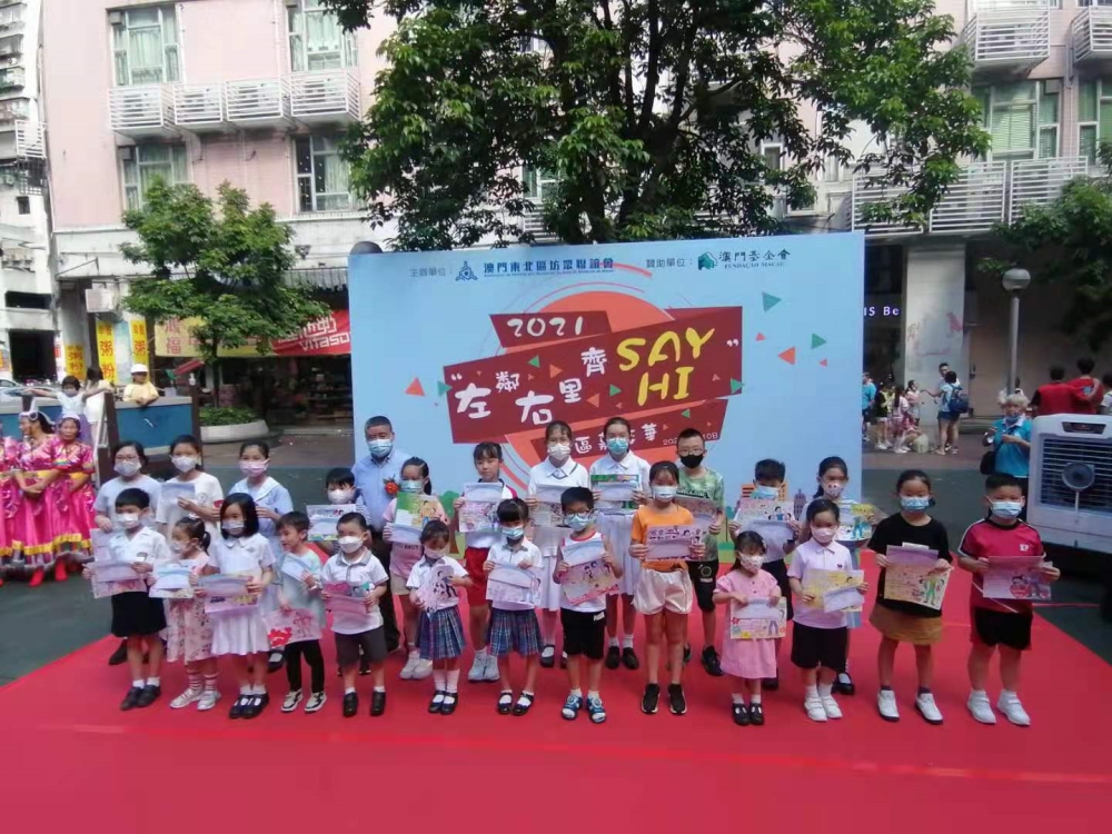 坊會在南澳花園舉行2021”左鄰可里齊SAY HI "社區嘉年華,為父親節心意卡填色比賽得獎者頒獎。參與者約300人