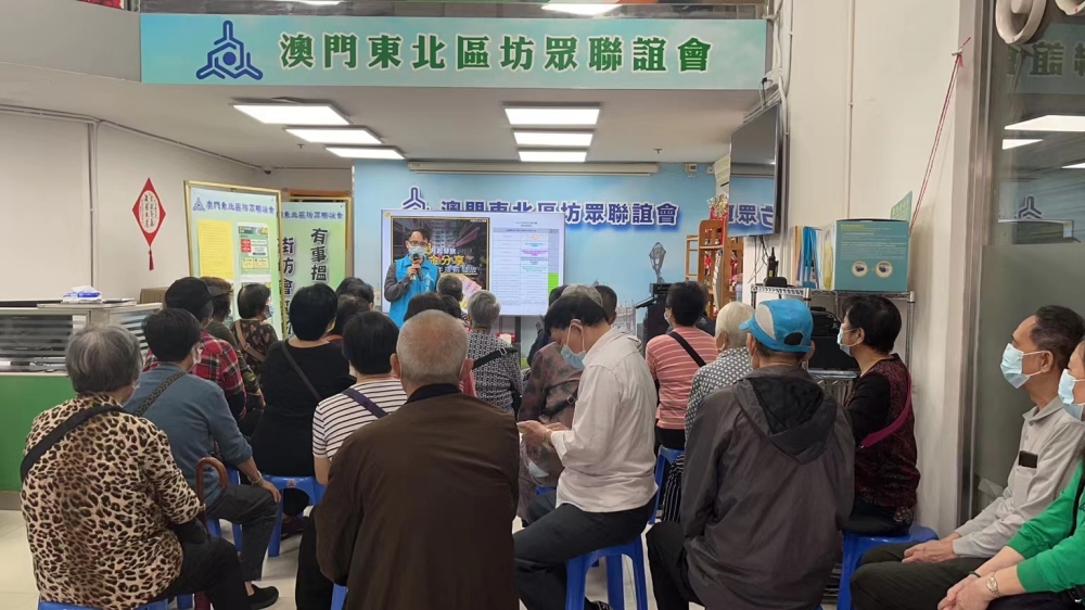 舉辦慶三八齊歡聚活動,義工幫忙溫體溫入檢查行程碼。