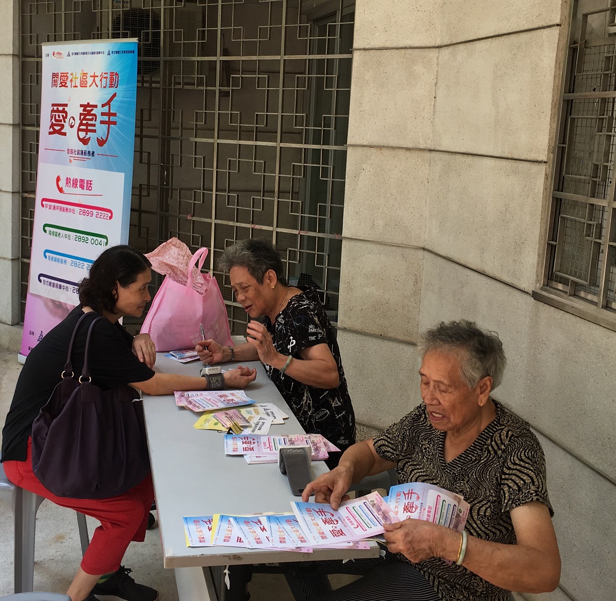 義工通過擺放攤位及派發宣傳單張和刊物,讓更多市民去認識並發掘隱閉長者。