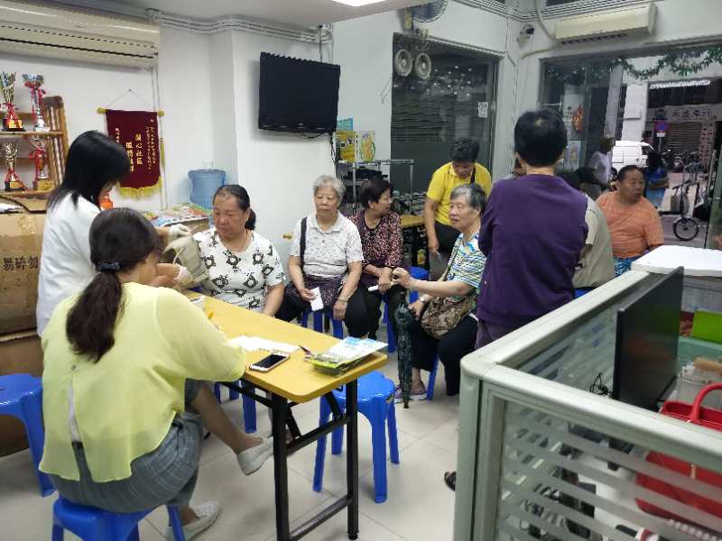 為宣傳本會會務,本會組織義工及有專業護士的義工為本區居民測血糖量血壓。