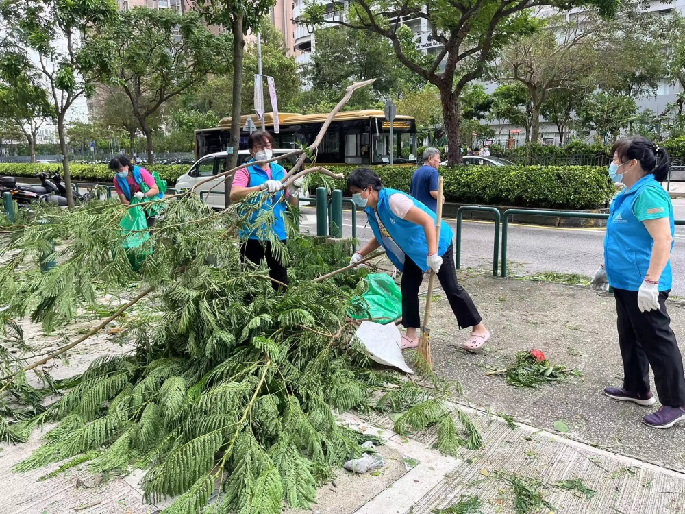 臺風“蘇拉”過后組織義工上街清潔街道樹葉。