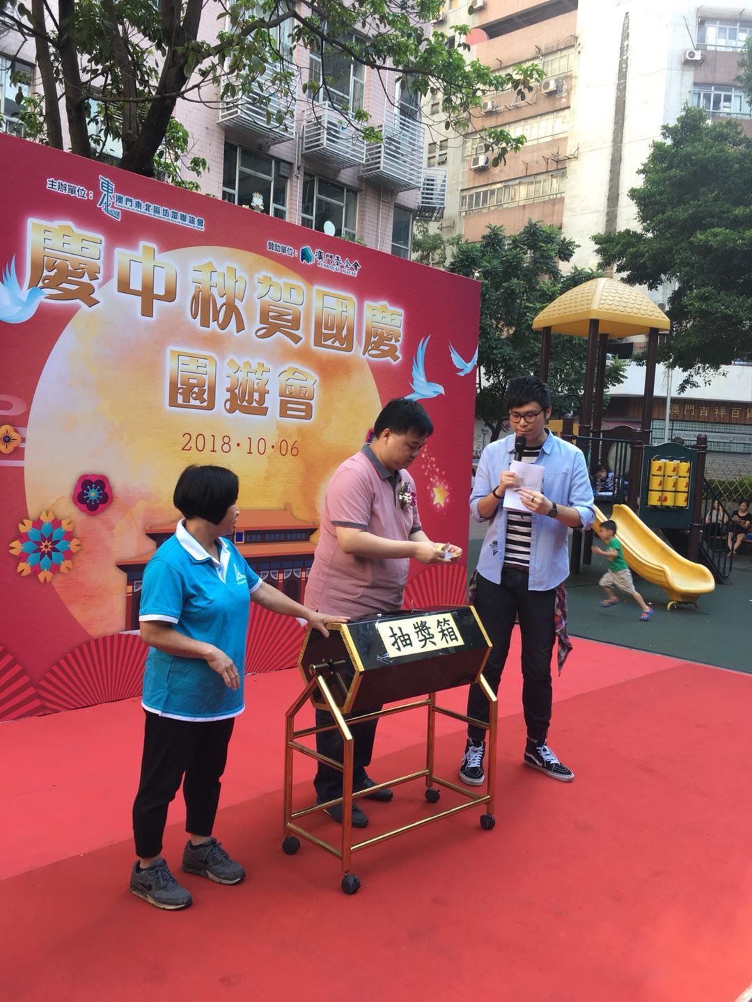 2018年10月6日下午3:00在南澳花園休憩區舉辦“慶中秋賀國慶”活動。現場設有攤位遊戲、舞臺表演、現場大抽獎等活動。現場氣氛熱鬧。